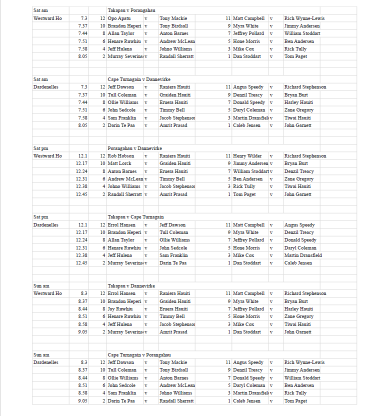 Saturday 11th / Sunday 12th April; Coronation Cup Zone play at Takapau. The four Clubs involved are Dannevirke, Takapau, Porongahau, and Cape Turnagain. Draw below